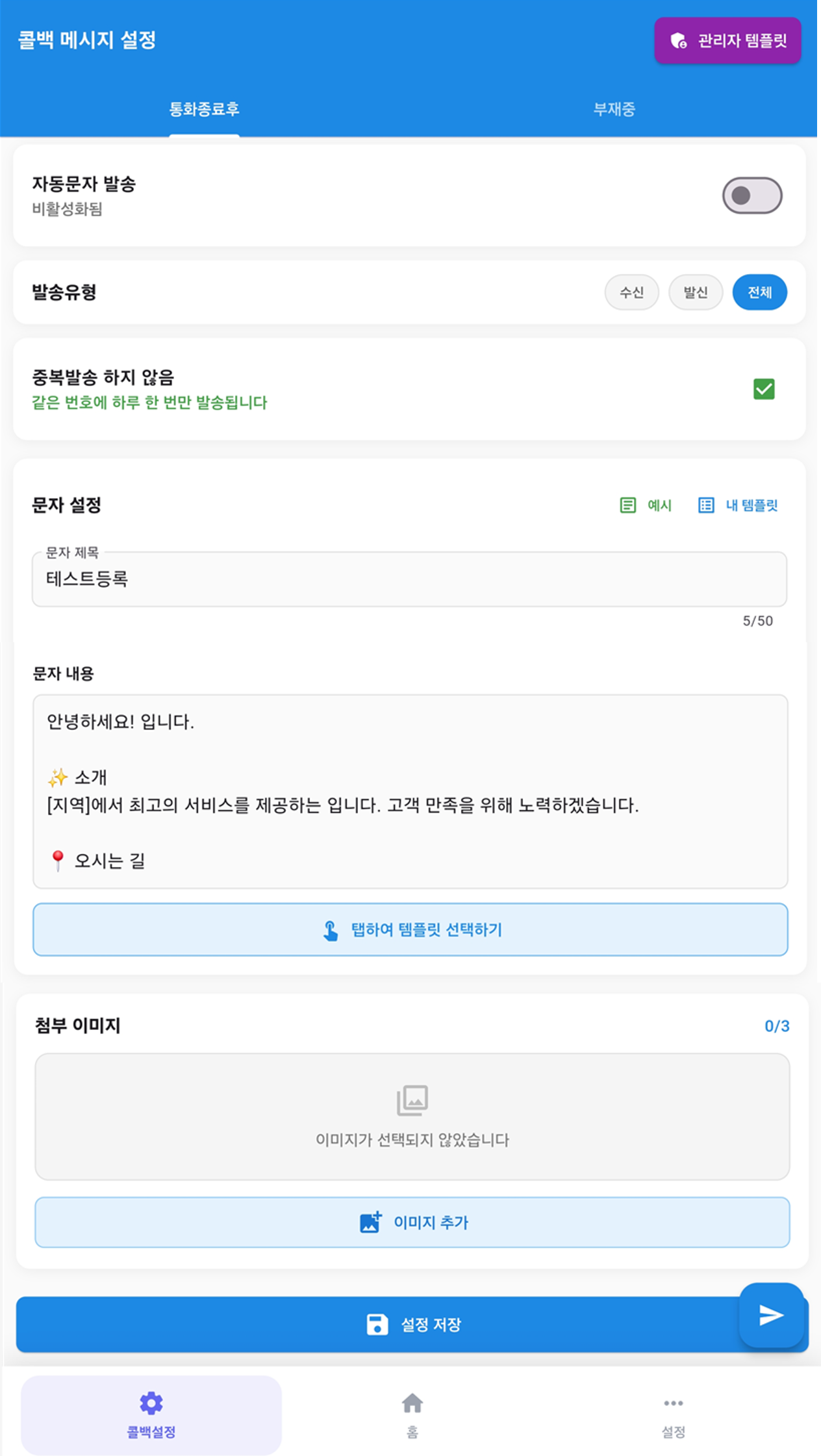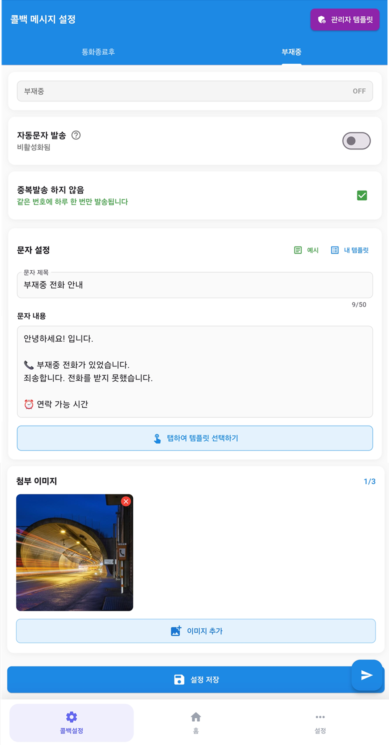 - 자동 콜백메시지: 통화 종료 즉시 SMS/MMS 발송 (상황에 맞게 자동 전환)